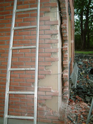 Utskifting av tegl i hjørner og etablering av dillitasjonsfuger.